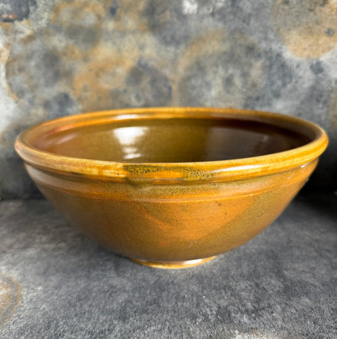 This large bowl is wood fired and is 10 inches wide by 4.5 inches tall.