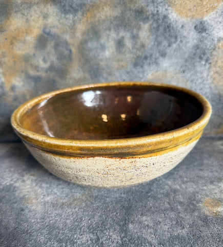 This wood fired bowl is 8 inches across and 3.25 inches tall.