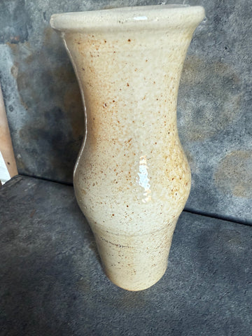 This wood fired vase is 9" tall and 4" wide. The glaze was washed over with a wild New England clay.