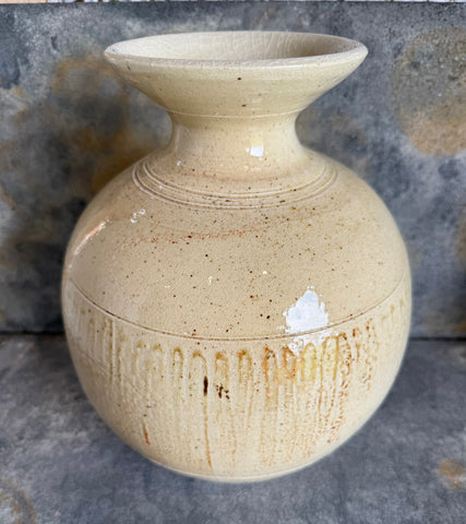 This vase was wood fired and stands 10.5 inches tall by 8 inches wide