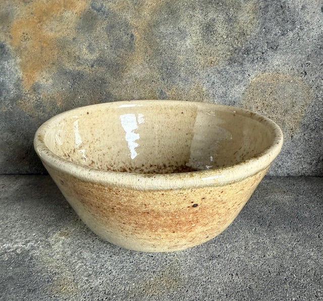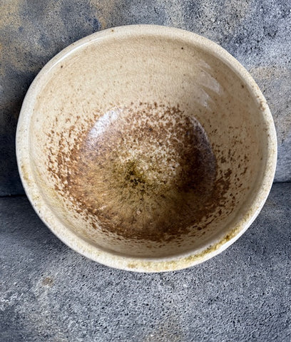 This bowl is 6 inches across and 3 inches deep. It was wood fired.